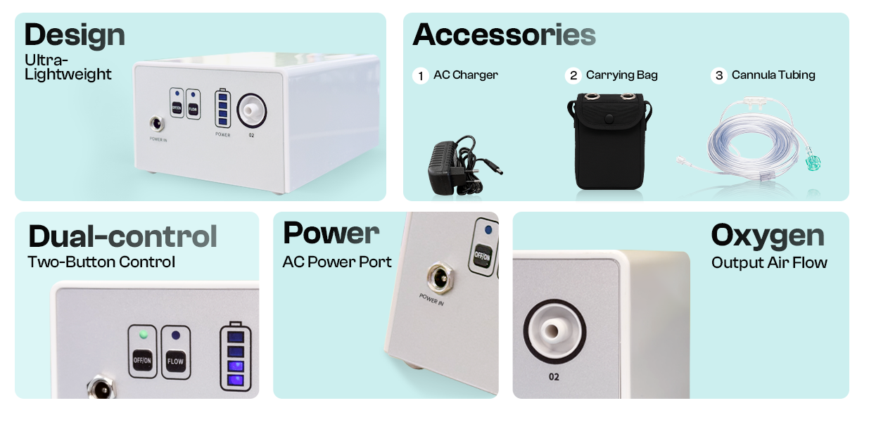 Everything you need is right inside: the concentrator, tubing, charger, power cords, and travel case. No extra parts to buy - just plug it in, press start, and breathe easy within seconds.